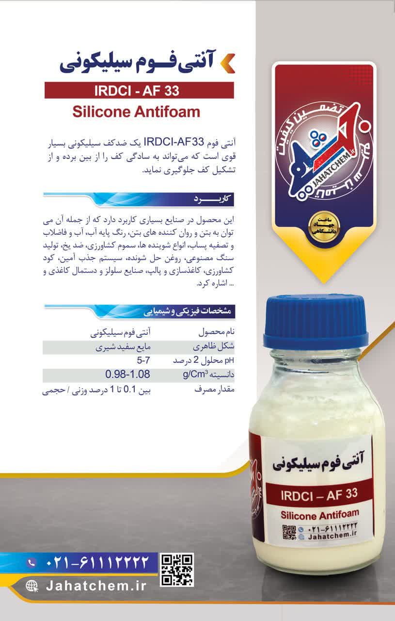 آنتی فوم IRDCI-AF 33 یک ضدکف سیلیکونی بسیار قوی است که میتواند به سادگی کف را از بین برده و از تشکیل کف جلوگیری نماید.