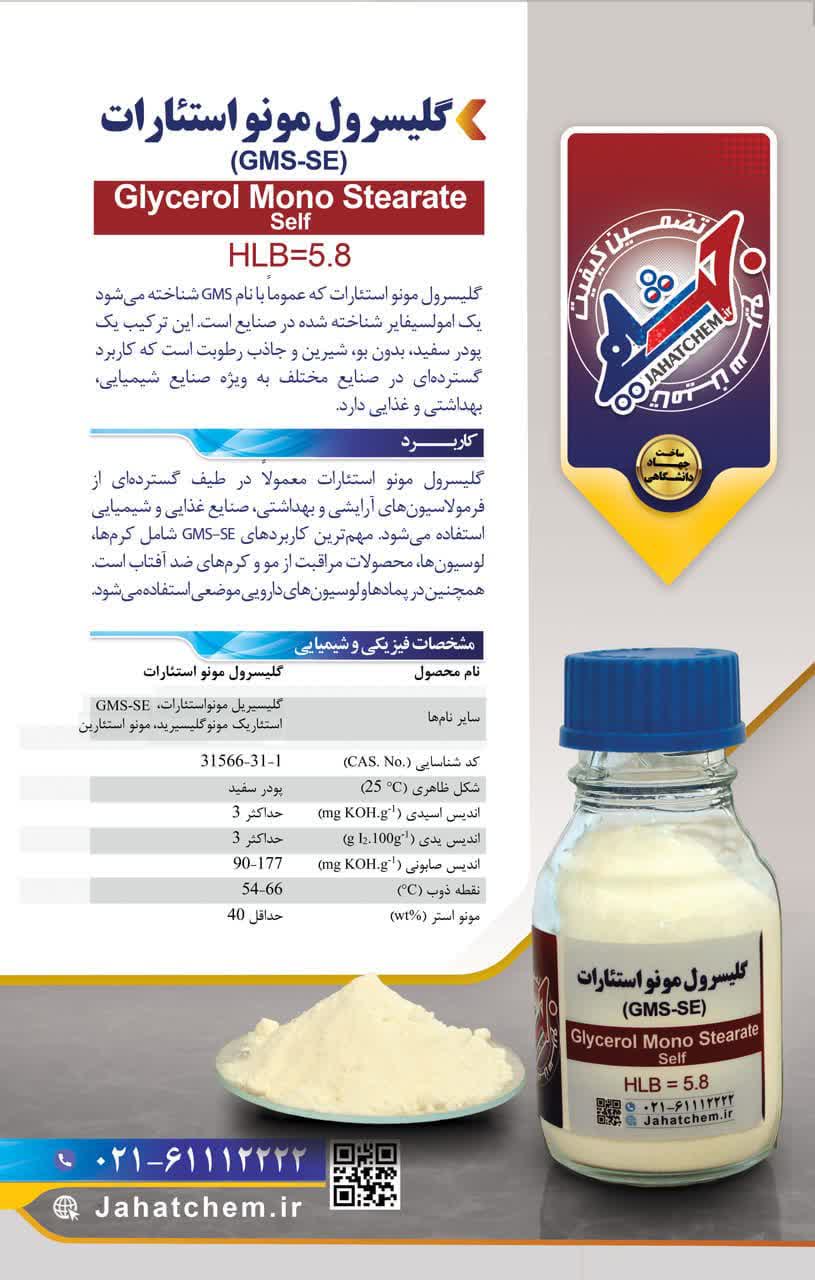 گلیسرول مونو استئارات که عموماً با نام GMS شناخته میشود یک امولسیفایر شناخته شده در صنایع است. این ترکیب یک پودر سفید، بدون بو، شیرین و جاذب رطوبت است که کاربرد گستردهای در صنایع مختلف به ویژه صنایع شیمیایی، بهداشتی و غذایی دارد.